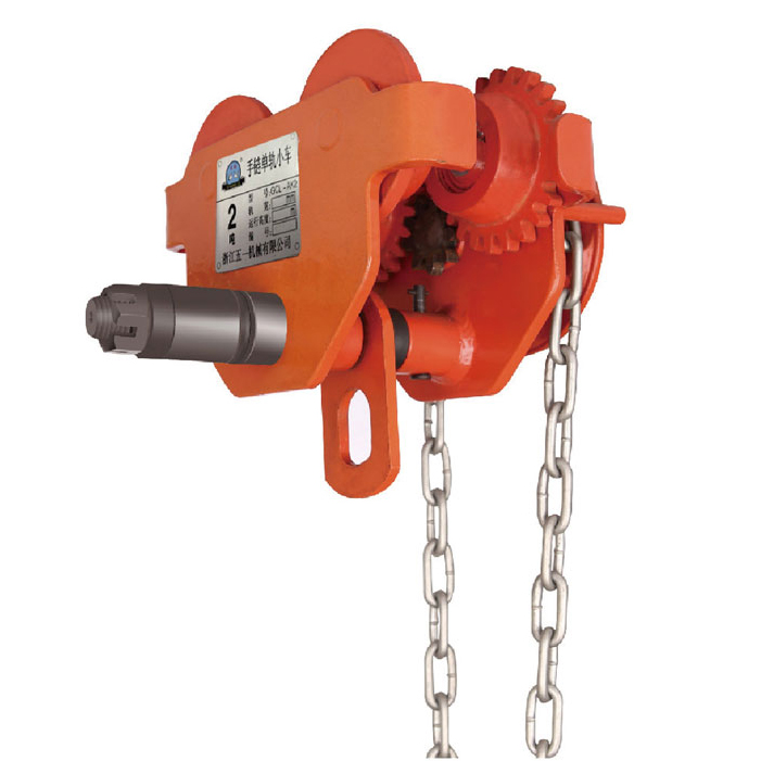双鸽牌GCL-AK手链单轨行车可与手拉葫芦或其它起重工具配套使用,安装于工字钢轨道的下翼缘上,组成起重运输小车。它具有结构先进、外形美观、传动效率高、手拉或手推力小等特点。广泛地适用于工厂、矿山、码头、船坞、仓库和机房等地安装设备和装卸货物。